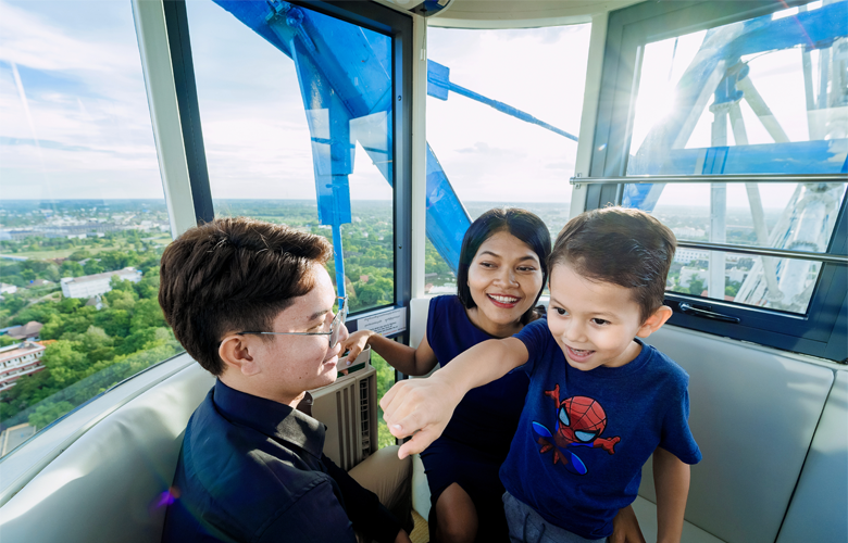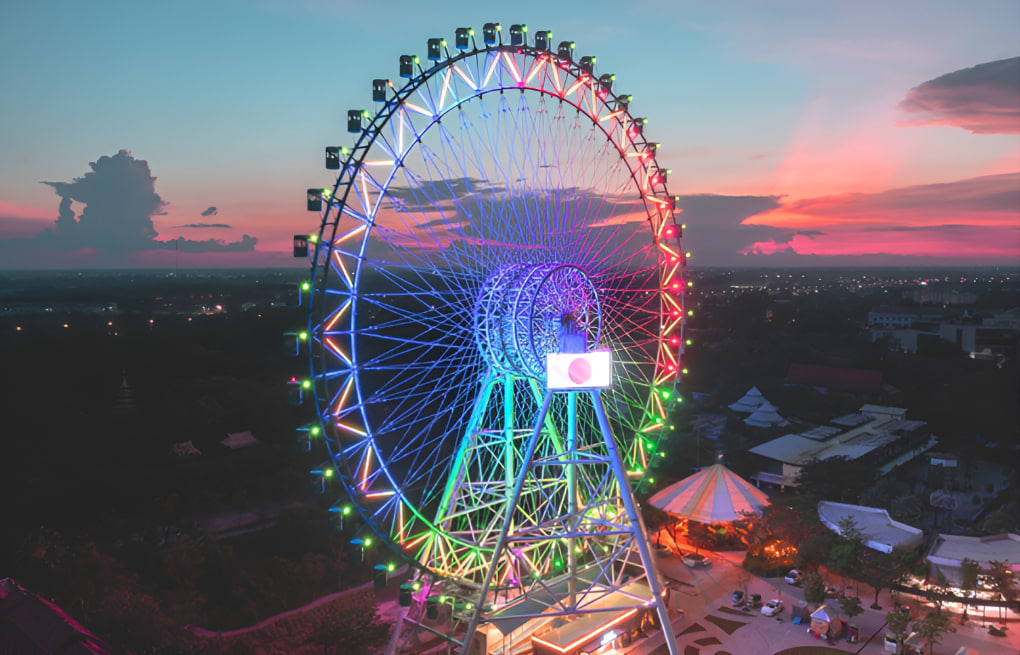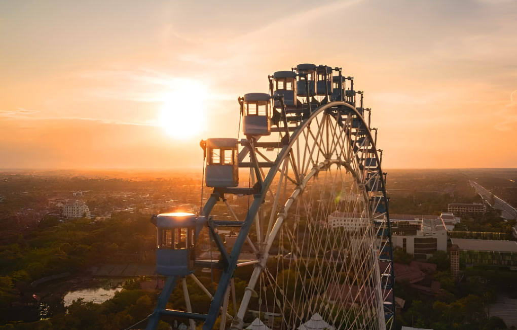 Opened in March 2020, Angkor Eye already became one of the most popular attractions in Siem Reap. The Ferris Wheel and its 85 meters height is offering an inescapable experience for locals and tourists overlooking Siem Reap’s city but also the famous temples of Angkor Wat which make the giant wheel among the best attractions in Angkor. In family or with friends, Angkor Eye is an exciting activity that will make your ride unforgettable. Angkor’s Ferris Wheel is the very first in Cambodia but also one of the biggest in Asia. For those who still wonder what to do in Siem Reap, Angkor Eye is the best activity in town for the entire family. Climb in one of our 48 air-conditioned cabins for 18 minutes, the cabin offers you an agreeable ride for up to 4 persons and observe Siem Reap’s countryside like you never did. Located on National Road 6, the wheel reveals itself when you drive from the airport. A spectacular mechanical concept to bring dynamism near the Cambodian Cultural Village and Angkor Light. 5 minutes away from the city center, Angkor Eye is easy to access, and its location allows the best view over the city and the countryside. Away from over attractions, it is actually best for passengers to have hindsight and observe the very best of Siem Reap in every direction.