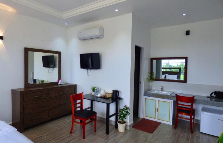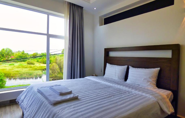 Kampot Origin Guest house in Kampot offers family rooms with air-conditioning, private bathrooms, and garden views. Each room includes a tea and coffee maker, mini-bar, and free WiFi.Dining Experience: The family-friendly restaurant serves European and Cambodian cuisines with halal, vegetarian, vegan, and gluten-free options. Breakfast includes local specialties, warm dishes, and fresh fruits.Leisure Facilities: Guests can relax on the sun terrace or in the garden. The property features a coffee shop, outdoor seating area, and picnic spots. Free on-site parking is available.Nearby Attractions: Kampot Pagoda is a 15-minute walk away. Sihanouk International Airport is 50 mi from the guest house. Boating and cycling activities are available in the surroundings. Distance in property description is calculated using OpenStreetMap.