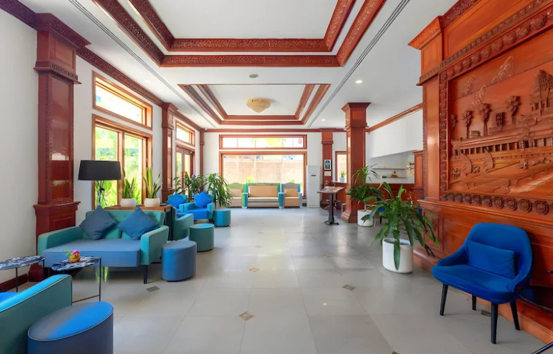 The grand lobby of Angkor Land Urban Boutique offers a tranquil environment for guests to complete their check in process or await tours. Complemented by contemporary seating with a mid-century classic design, the swimming pool provides a lavish ambiance with a breathtaking view of the bar lounge. The Khmer House design concept, along with its bar lounge overlooking the pool, is undoubtedly stunning. Angkor Land Urban Boutique is strategically located in the center of Siem Reap city. Conveniently situated within walking distance from the Siem Reap city center and the bustling "Pub Street & Night Market" area, which is home to a variety of high-end international restaurants.