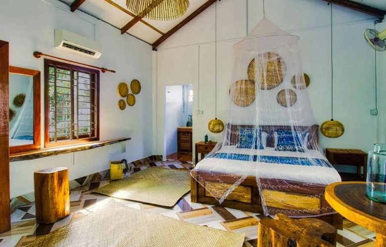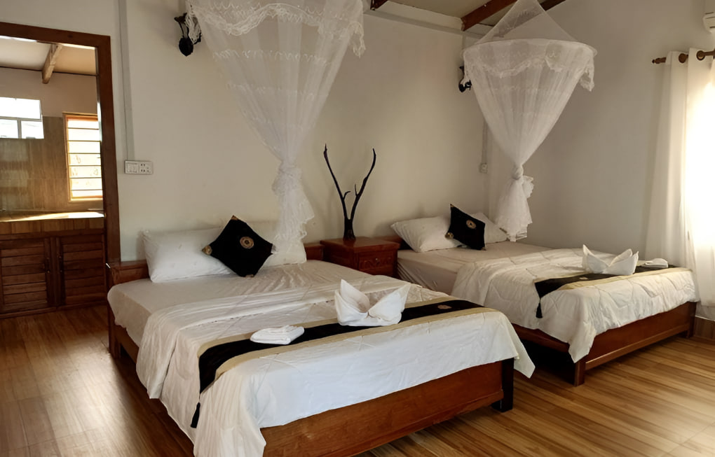 Tree Bungalow (ទ្រីបឹងហ្គាឡូ) or it's often called Tree Bungalow Kampot, is located in Ou Touch village, Sangkhat Andoung Khmer, Kampot municipality, Kampot province, Cambodia and far about ~5km away from Durian Roundabout.