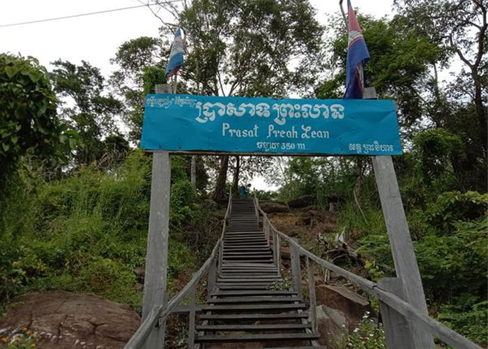 ប្រាសាទភ្នំព្រះលានឬប្រាសាទព្រះលានជាឈ្មោះភ្នំធម្មជាតិមួយដែលមានទីតាំងភូមិសាស្ត្រស្ថិតនៅ ក្នុងភូមិក្រាំងដូងឃុំព្រះឃ្លាំងស្រុកត្បែងមានជ័យខេត្តព្រះវិហារ។ដែលមានចម្ងាយប្រហែល២៥គីឡូម៉ែត្រពីទីរួមខេត្តព្រះវិហារ។ដែលស្ថិតនៅលើកូនភ្នំធម្មជាតិមានកម្ពស់ប្រមាណ១៨០ម៉ែត្រ។ប្រាសាទនេះត្រូវ បានស្ថាបនាឡើងពីថ្មបាយក្រៀមនិងថ្មភក់។ប្រាសាទនេះមានបណ្តោយប្រវែង១៦០ម៉ែត្រនិងទទឹងប្រវែង៦០ម៉ែត្រ។ហើយក៏ជាតំបន់រមណីយដ្ឋានទេសចរណ៍បែបវប្បធម៌និងប្រវត្តិសាស្រ្តមួយដែលភ្ញៀវទេសចរជាតិគួរតែឡើងជណ្ដើរឈើប្រមាណ៨០កាំដែលស្ថិតនៅជាប់នឹងផ្លូវជាតិលេខ៦២នេះតែម្តង។នៅលើកូនភ្នំនេះភ្ញៀវទេសចរអាចមកកម្សាន្តសិក្សាស្រាវជ្រាវស្វែងយល់អំពីប្រវត្តិដ៏អស្ចារ្យនិងទស្សនាប្រាង្គប្រាសាទចម្លាក់ក្បាច់លើជញ្ជាំងដែលបាក់បែករលំស្ទើតែទាំងស្រុងថែមទាំងអាចគយគន់ទេសភាពចម្ការដំណាំហូបផ្លែដែលកសិករដាំដុះនៅជើងភ្នំត្បែង ចុងខែវស្សាដ៏ស្រល់ត្រកាល។ Phsat Prasat Preah Lean, also known as Prasat Preah Lean, is a naturally occurring mountain that can be found in Kraing Dong village, Preah Khleang commune, Tbeng Meanchey district, and Preah Vihear province. 25 kilometers away from Preah Vihear, a provincial town. situated on a 180-meter-high natural hill. The laterite and sandstone were used to construct the temple. Its dimensions are 60 meters in width by 160 meters in length. Alongside National Road 62, there are roughly 80 wooden stairs that national tourists must ascend to reach the site's cultural and historical attractions. Visitors can view the panorama of fruit plantations that farmers grow at the base of Tbeng Mountain at the conclusion of the rainy season as well as visit the temples and carvings on the walls that are nearly completely damaged on this hill. Pine.