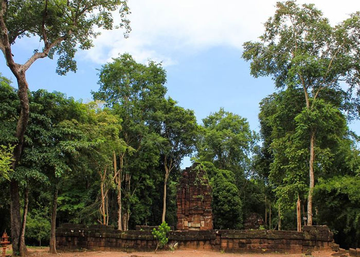 ប្រាសាទក្រពុំឈូកស្ថិតនៅប្រហែល១០០ម៉ែត្រខាងកើតផ្លូវជាតិលេខ៦២ក្នុងឃុំរំដោះស្រុករវៀង ខេត្តព្រះវិហារដែលចម្ងាយប្រមាណ៤៥គីឡូម៉ែត្រពីរទីរួមខេត្តព្រះវិហារ។ដែលបានសាងសង់ឡើង ពីថ្មបាយក្រៀមនិងថ្មភក់នេះគឺកសាងឡើងដោយព្រះបាទជ័យវរ្ម័នទី៤(គ.ស៩២០-៩៤៤)ដែលធ្វើឡើង ដើម្បីឧទ្ទិសដល់ព្រះវិស្ណុតាមលំនាំរចនាបទប្រាសាទកោះកេរ។ហើយរហូតដល់បច្ចុប្បន្នតួប៉មដែលមាន កំពស់ប្រមាណ១២ម៉ែត្រនិងកំពែងព័ទ្ធជុំវិញស្ថិតនៅក្នុងលក្ខណ:ល្អបង្គួរលើកលែងតែគុបុរ:ពីទិសខាងកើត គឺបាក់បែកស្ទើរទាំងស្រុងព្រោះតែអំពើចោរកម្មបំផ្លិចបំផ្លាញលួចយកទាំងចម្លាក់ផ្តែរនិងរូបអាទិទេពមួយ ចំនួនផងដែរ។ហើយទីនោះក៏ជាកន្លែងដែលទាក់ទាញភ្ញៀវទេសចរភ្ញៀវជាតិនិងអន្តរជាតិដ៏សំខាន់សម្រាប់ខេត្តព្រះវិហារផងដែរ។ Preah Vihear province's Krapum Chhouk temple is situated about 100 meters east of National Road 62 in Romdos commune's Rovieng district, some 45 kilometers from the provincial capital of Preah Vihear. Jayavarman IV (920–944), a Koh Ker-inspired dedication to Vishnu. With the exception of Kubur, which has been nearly totally demolished from the east owing to theft and destruction, the tower, which is about 12 meters high, and the surrounding wall are in fine shape right now. There are also several statues and gods. Additionally, it is a significant domestic and foreign tourist destination for Preah Vihear province.